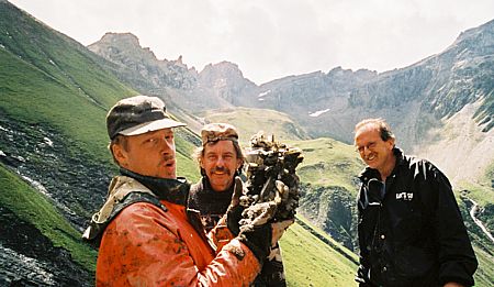 Es stellen sich neue Funde ein aus einer Seitenkluft kommen sehr schöne Gruppen mit kleineren aber sehr glänzenden Kristallen zum vorschein. © Copyright Foto Michael Flepp, 2002