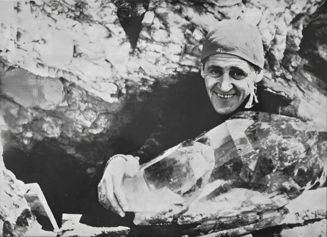 Von Känel und von Arx entdecken 15 m tiefer eine weitere grosse Kluft bzw. ein Kluftsystem wo sich immer wieder Hohlräume mit grossen Kristallen öffneten.